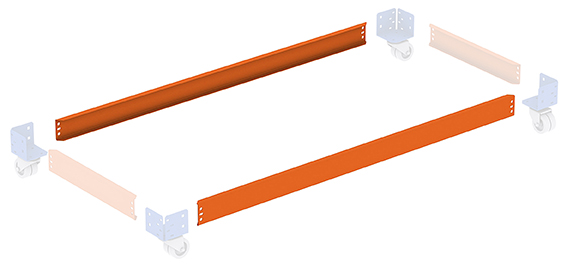 - 1 sbarra centrale di rinforzo. (2 per il tavolo di 1800x1000 mm). Solo in livelli superiori.